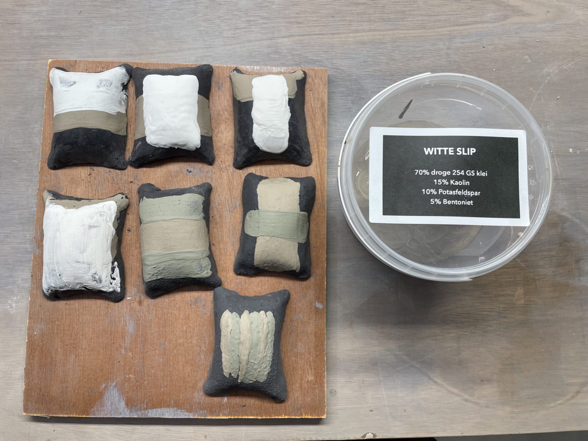 -Also I added 5% bentonite.. this may be a little too much. Advantage is that the slip is beautifully brushable.