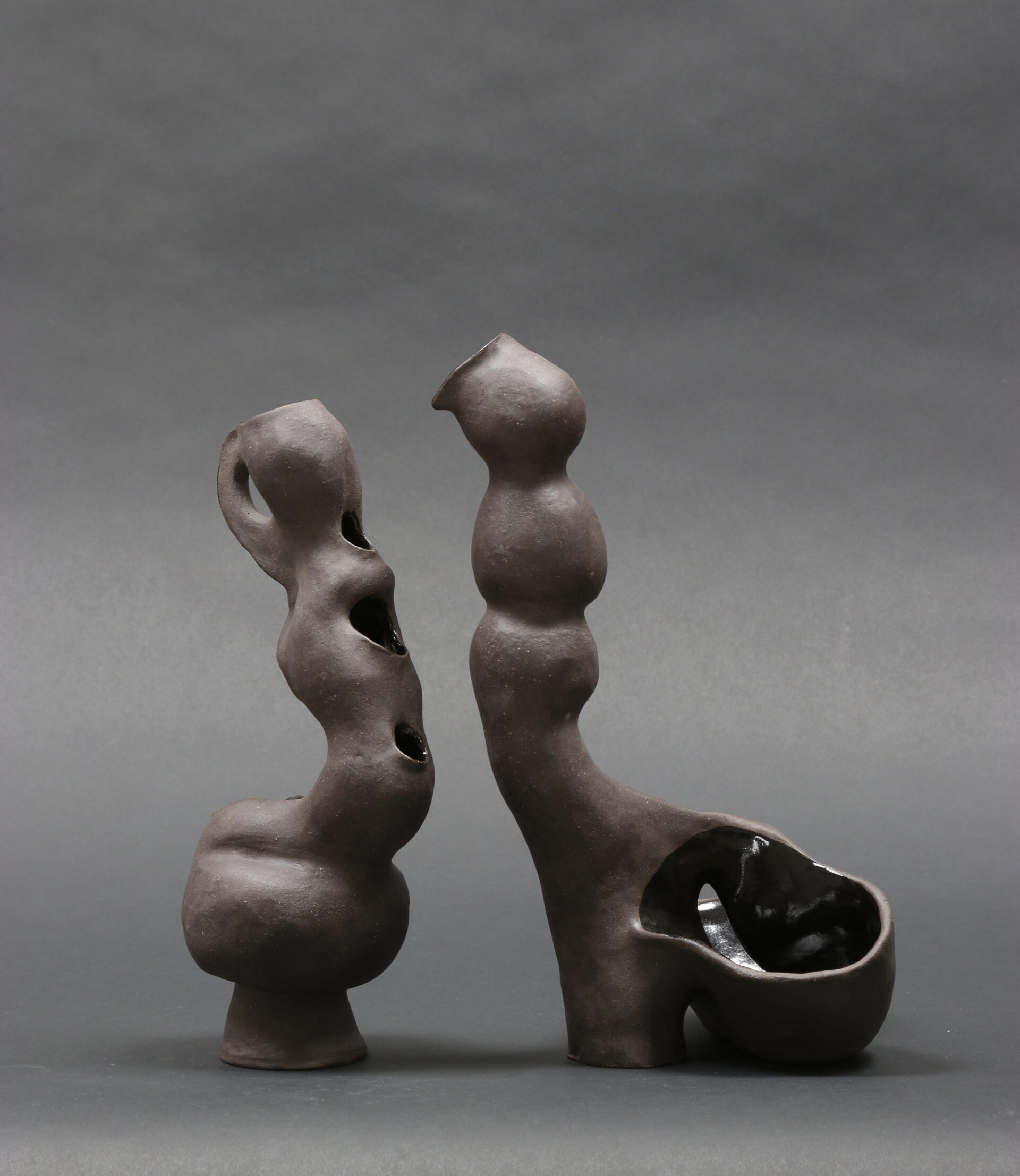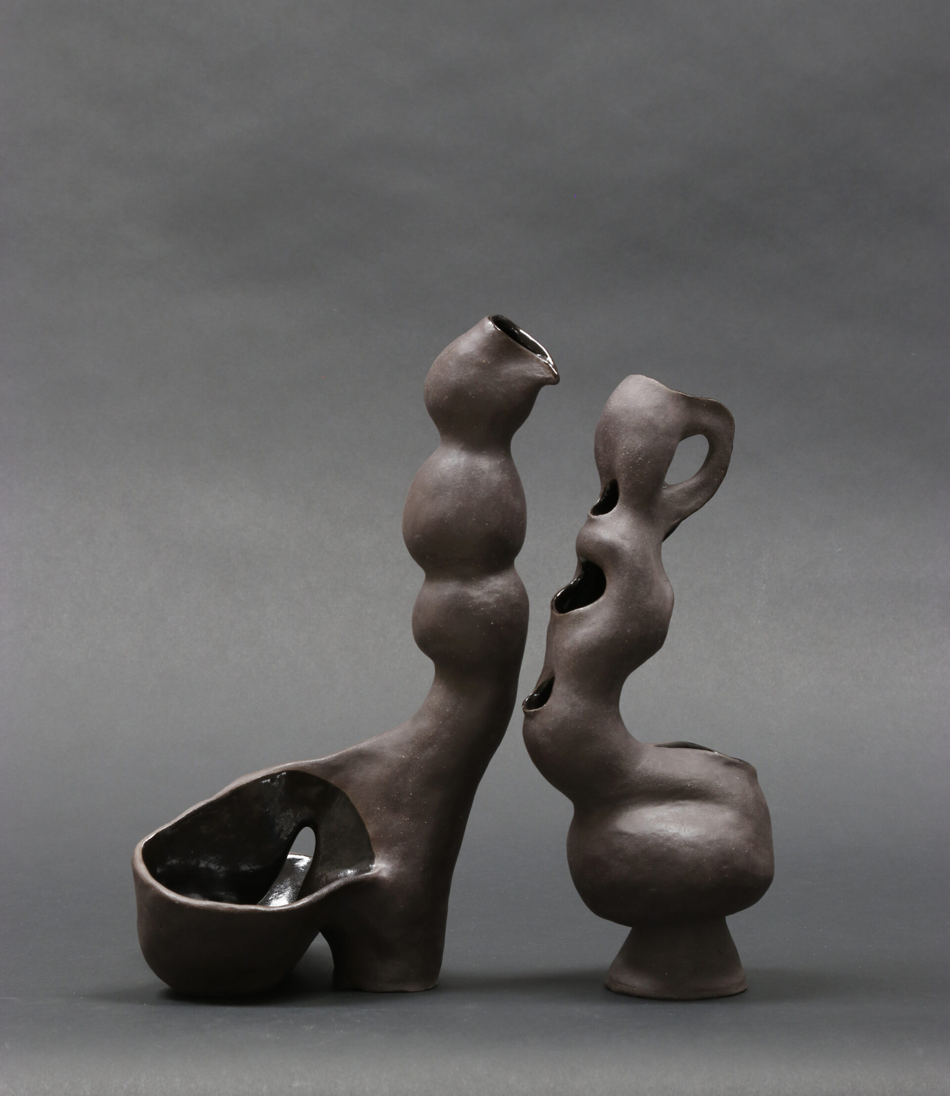 These sculptures are caught in a courting dance that refers to seduction, sexuality and tactility.