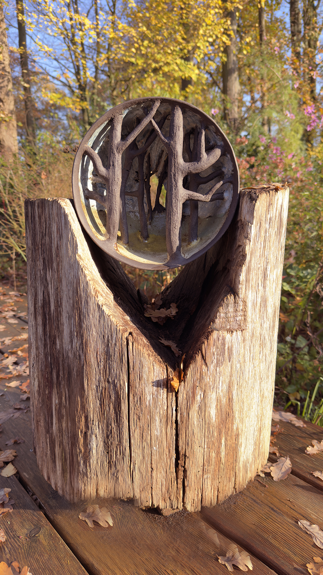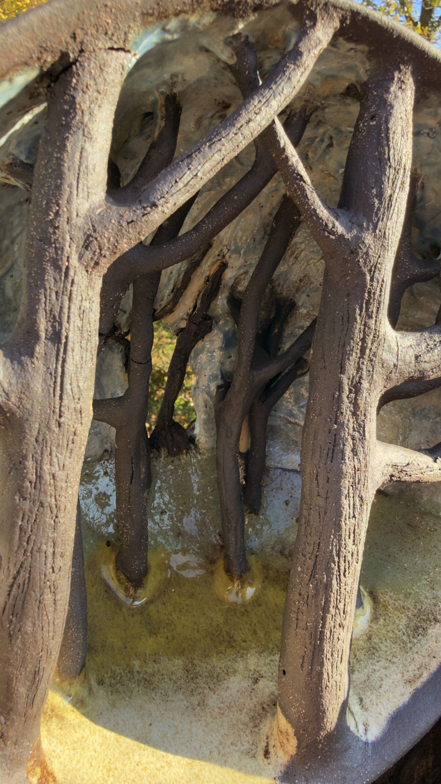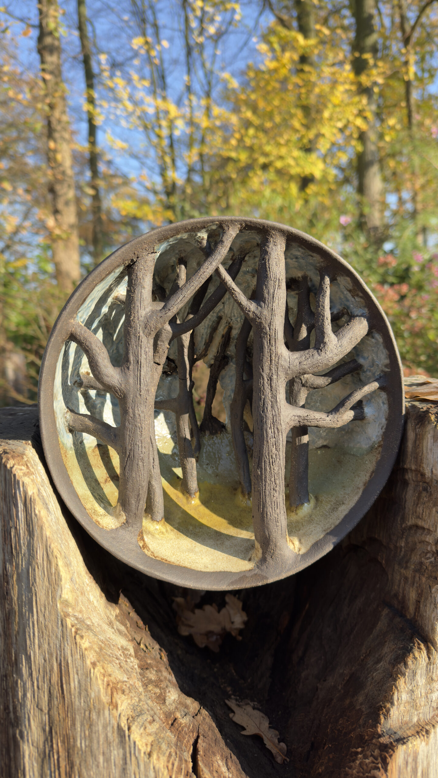 The ForestAbstract view of a dark forest in a round tunnel. Year2023MaterialBrown Stoneware, with glazing.SizeH 30 x W 30 x D 20 cm Back to portfolio overview