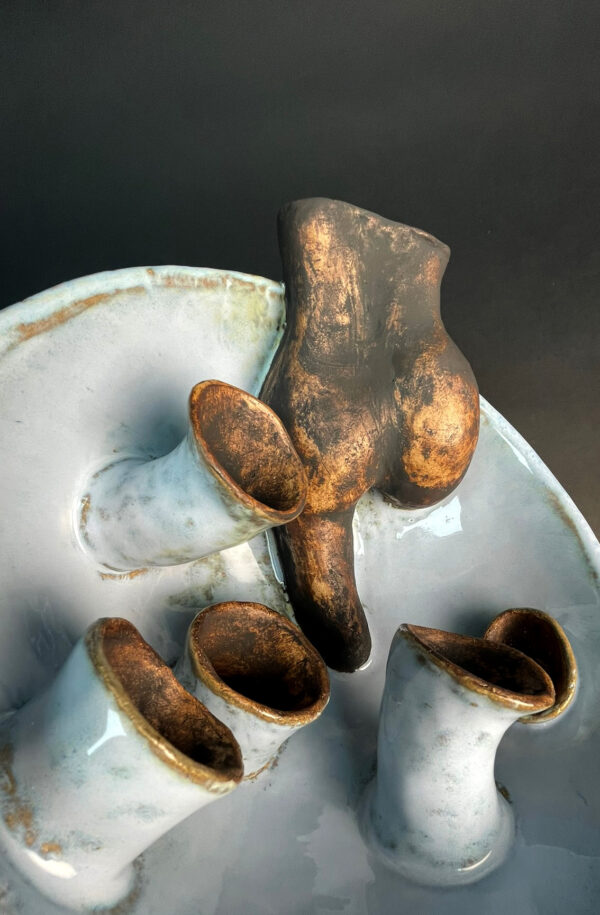 Between light and darkness, visually impaired, I sculpt in clay by touch, creating poetic forms that speak of eyes and tears, tunnels and aids, loss and resilience. My sculptures carry quiet stories of intimate reflections.